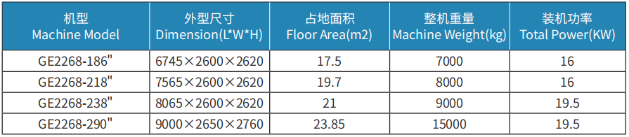 工作门幅 :186" 218" 238" 290"