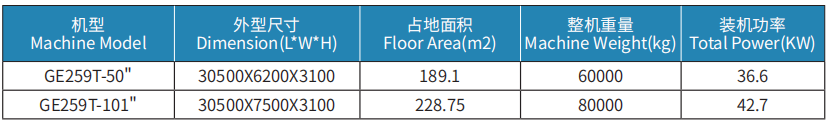 工作幅宽: 50” 101”机号: E5 E6 E7 E10 E12 E14