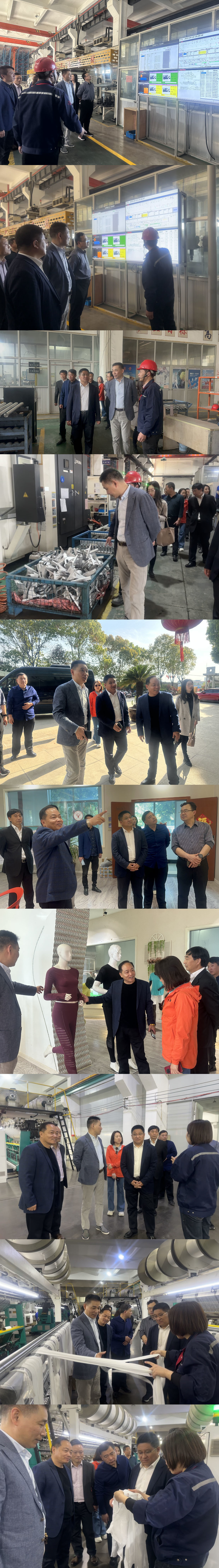 2023.4.10,葫芦岛市工商联吴欣宝书记一行 8 人在 常州市工商联党组成员、副主席眭荣辉的陪同下莅临公司参观,公司董事长、市工商联副主席王敏其向来宾介绍了国家智能制造示范基地(高效织造智能化经编生产线)的运行和建设情况,并就两地之间的产业合作进行了交流,来宾一行还参观了公司数字工厂运行现场并对智能化制造的流程详细了解。