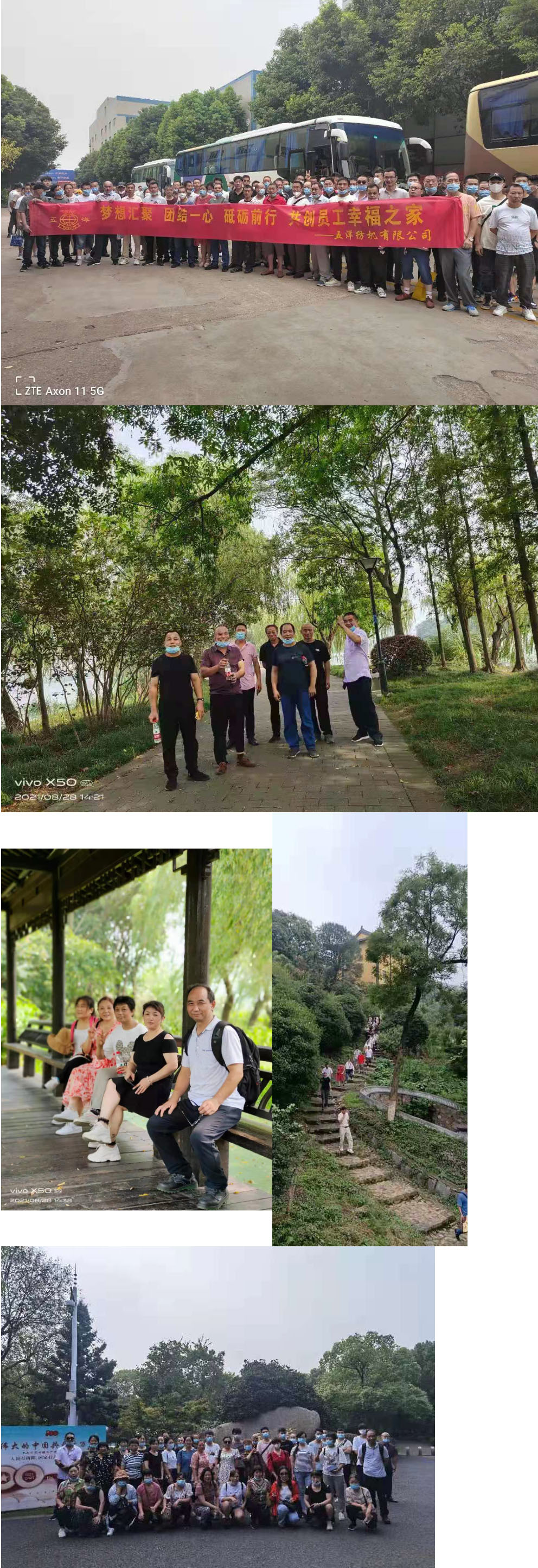 8月28日,五洋纺机组织员工秋游活动,丰富员工业余生活,促进员工身心健康。
