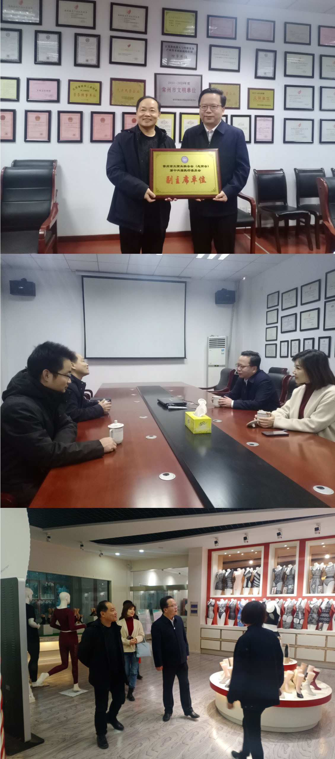 12月9日,常州市工商联主席何海平一行莅临五洋纺机,颁授常州市工商联(总商会)第十六届执行委员会副主席单位荣誉牌。五洋纺机董事长王敏其陪同何海平主席一行参观并交流。