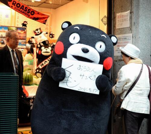 9、熊本熊地震后现身东京,卖萌感恩拥抱粉丝。