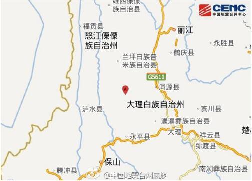 3、云南大理深夜接连发生5次地震,最大震级5级。