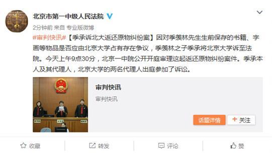 4、季羡林之子诉北大返还原物纠纷案开庭,季承本人出庭。