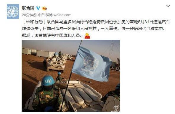 1、马里维和营地遇袭致1死3重伤,驻有中国维和人员。