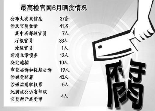 7、最高检6月公布大要案信息37条,涉省部级官员7人。