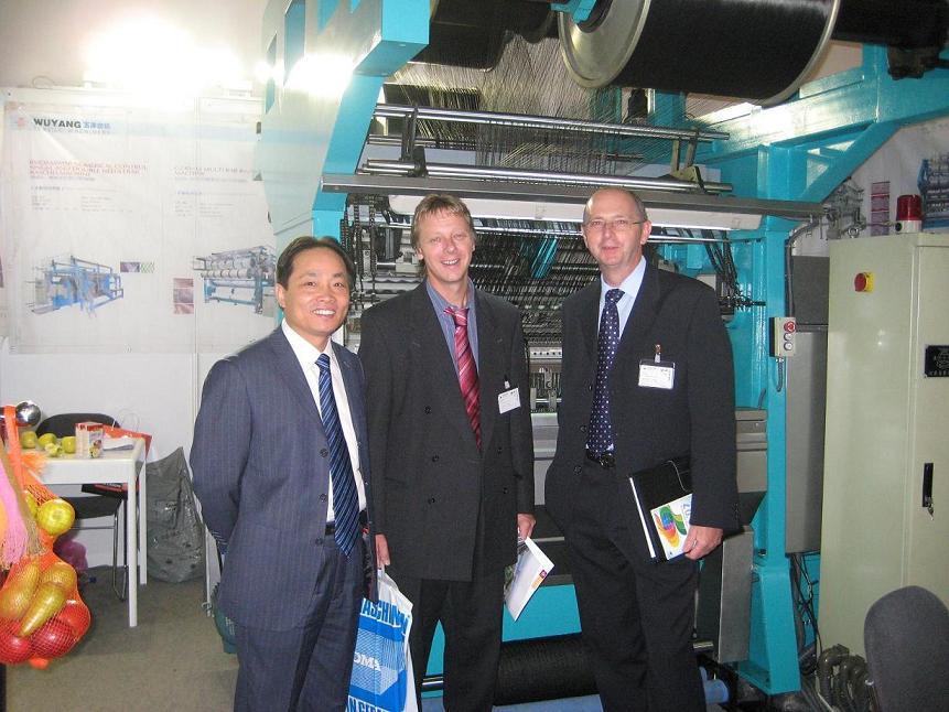 五洋纺机经过十多年的发展,已发展成为专业制造经编机的规模企业,为了扩大国际市场影响,2007年1月份参加印度新德里纺机展后,2007年九月参加了四年一届的第十五届欧洲纺织工业展,时间为八天,这也是纺织行业的最高级别展会。此次所带机器为公司RMD8体育用网双针床经编机,该机采用先进的电子送经、电子牵拉和电子横移技术,这也是中国自已设计制造的第一台经编机在德国展出。本次展会花费人民币40多万元,搜集到了300多个外国客商和行业友人资料,也是否公司历年来参加外国展会收获最多的一次。 目前,公司机器已出口加拿大、日本、马来西亚、俄罗斯、印尼、泰国、西班牙、印度、土耳其、哥伦比亚、突尼斯等国家。
