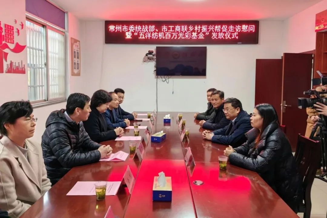 2月2日,市委常委、统战部部长杨芬率队赴金坛区朱林镇长兴村开展春节前乡村振兴帮促走访慰问暨“五洋纺机百万光彩基金”发放活动。